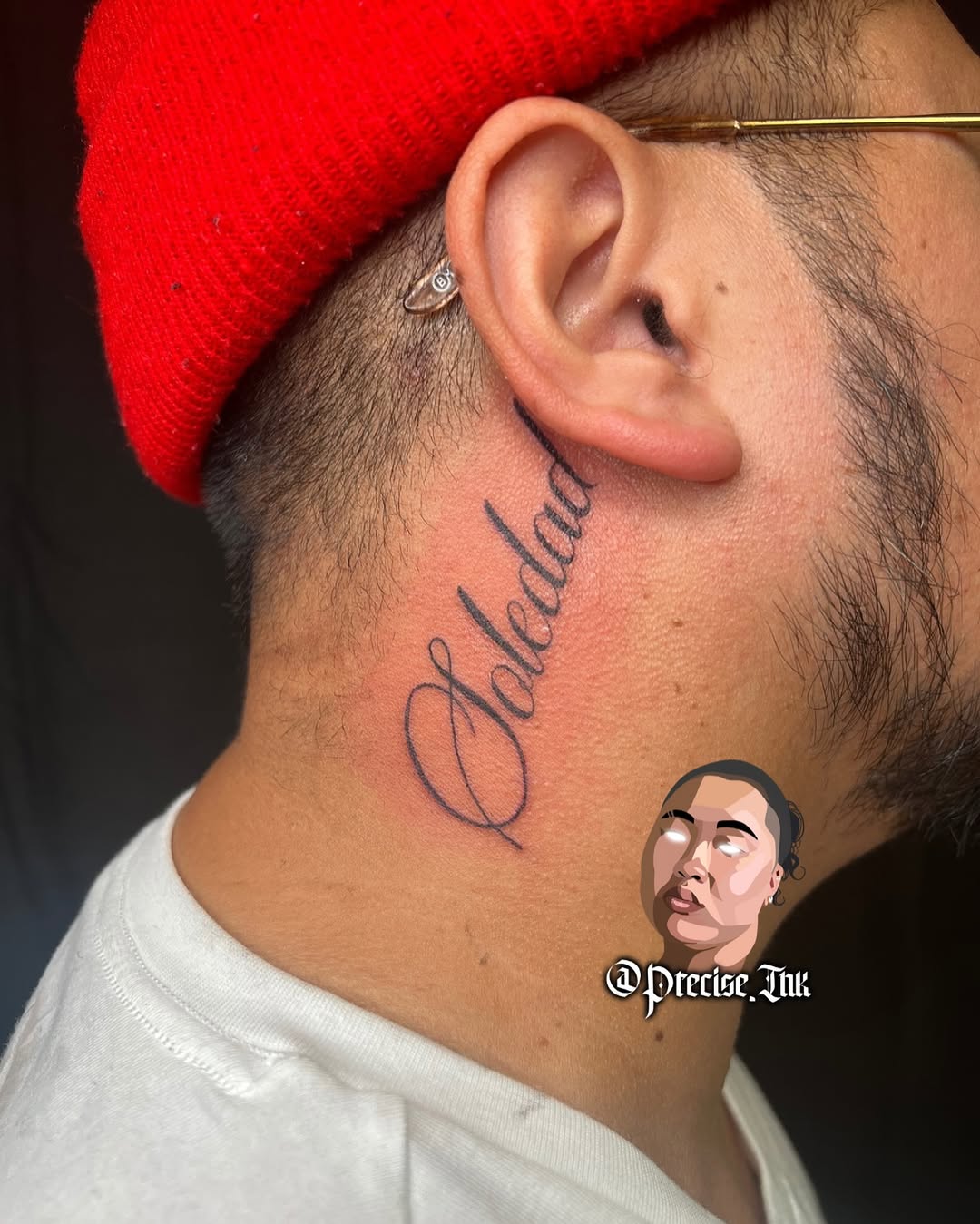 Tiny Name Behind Ear – Hidden, meaningful tattoo.