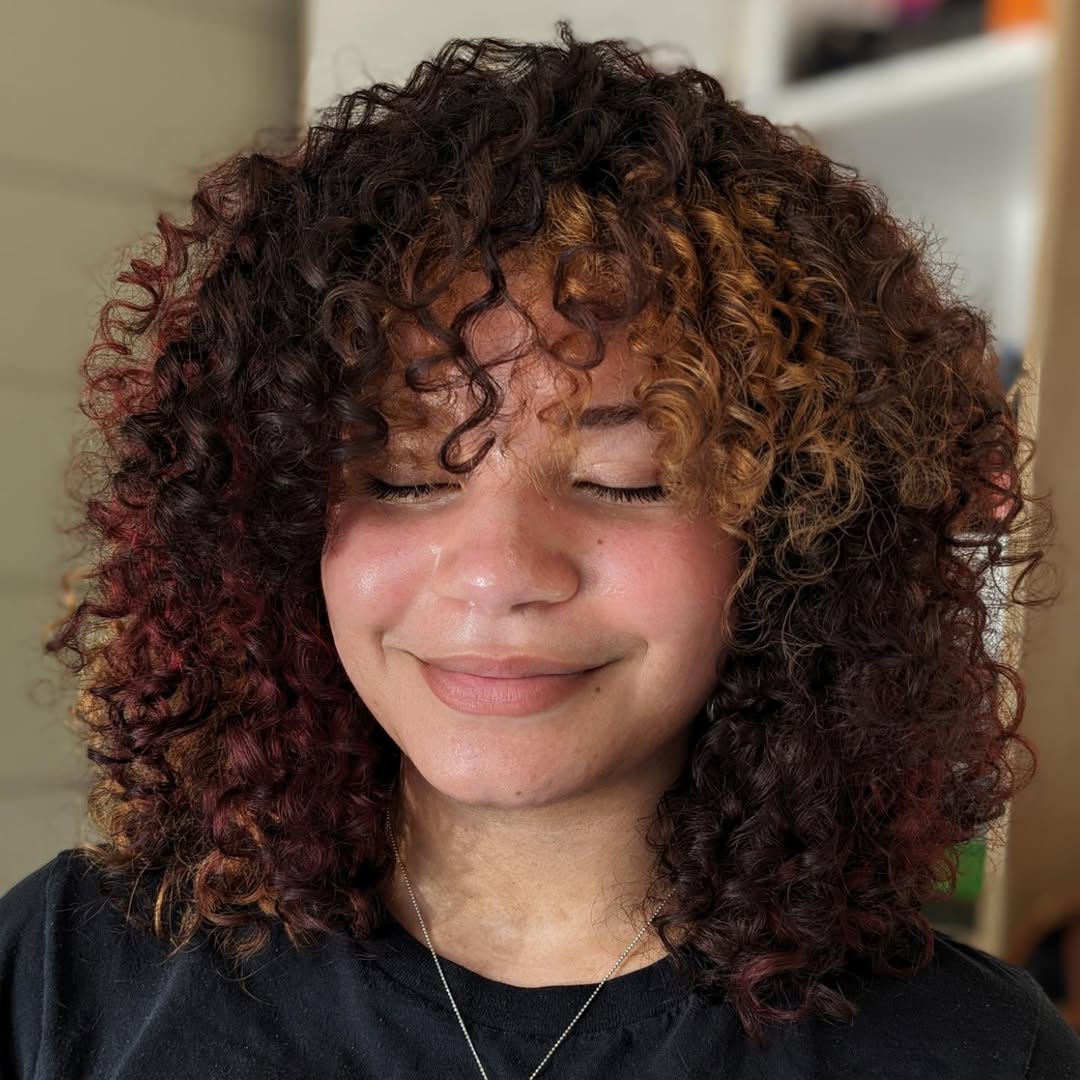 Curly Calico Hair – Curls make shades blend beautifully.