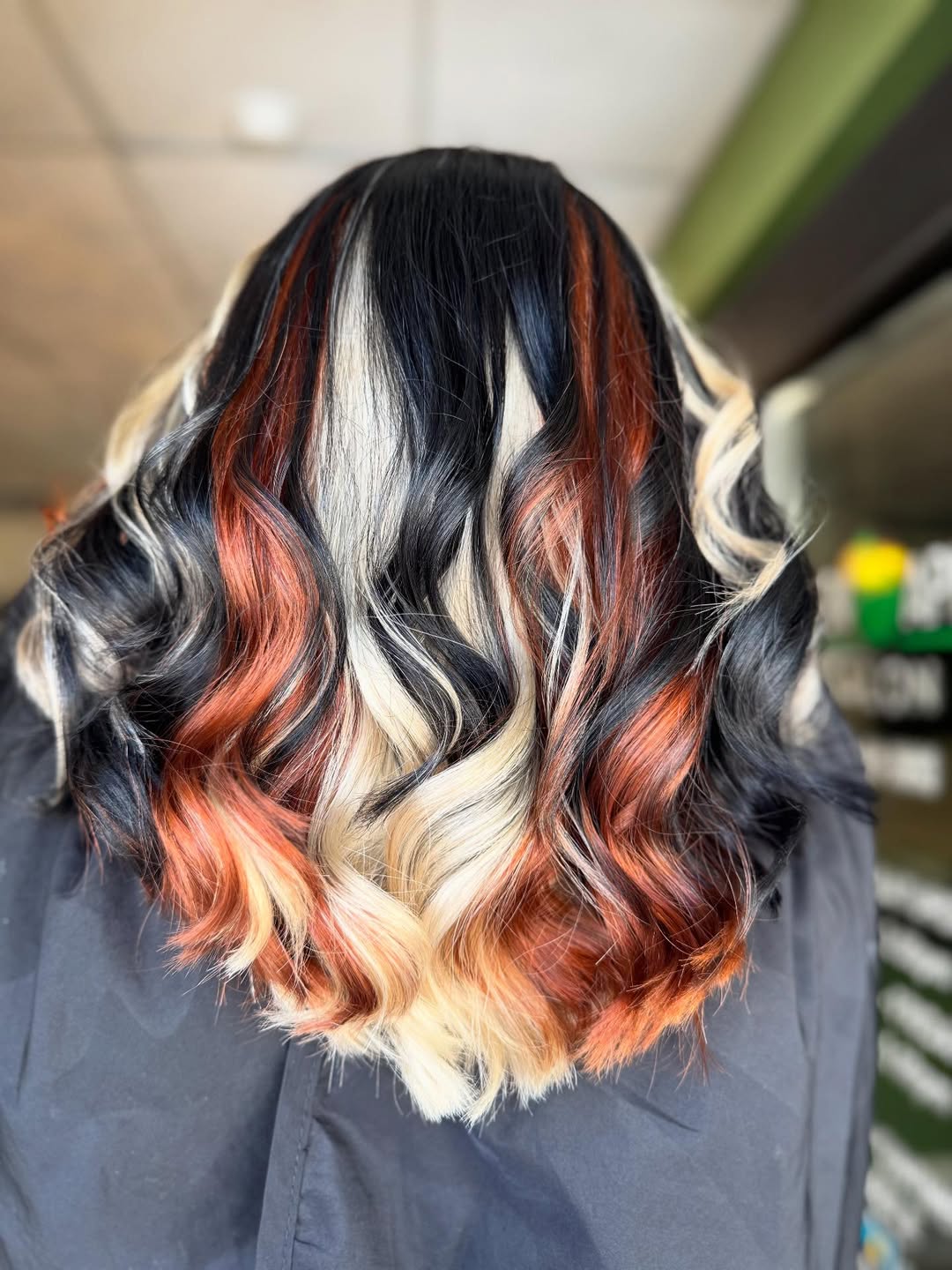 Fiery Red, Blonde & Black Mix – High-impact edgy look.