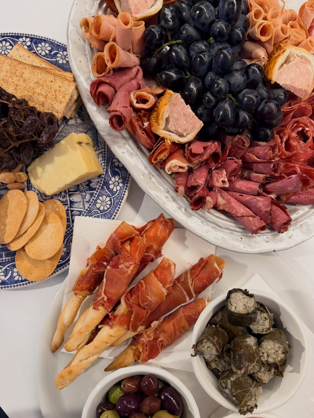 Spanish Tapas Board – Chorizo, serrano ham, manchego, and olives.