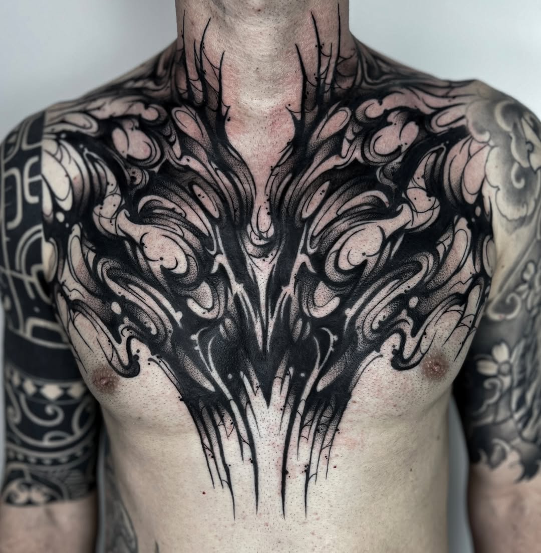 Abstract Chest Art Tattoo – Modern, artistic, and bold.