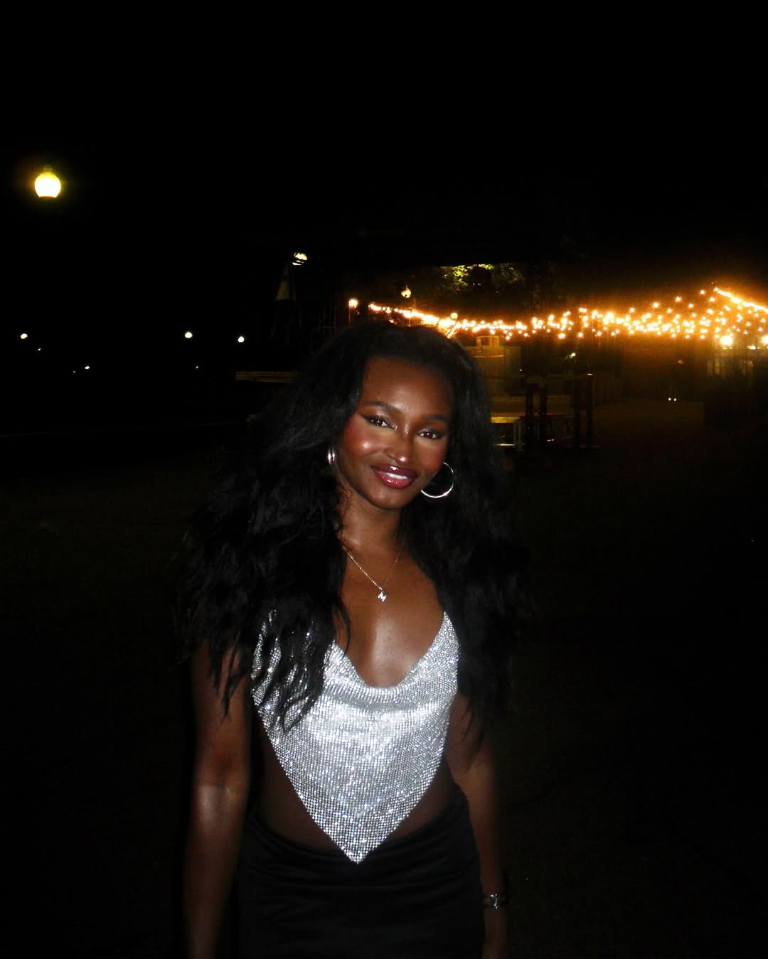 Metallic Top + Black Skinny Jeans – Adds shimmer for nighttime shows.