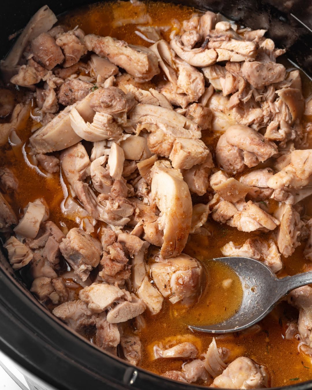 Shredded Crockpot Chicken Thighs – Fall-apart tender and perfect for wraps or salads.