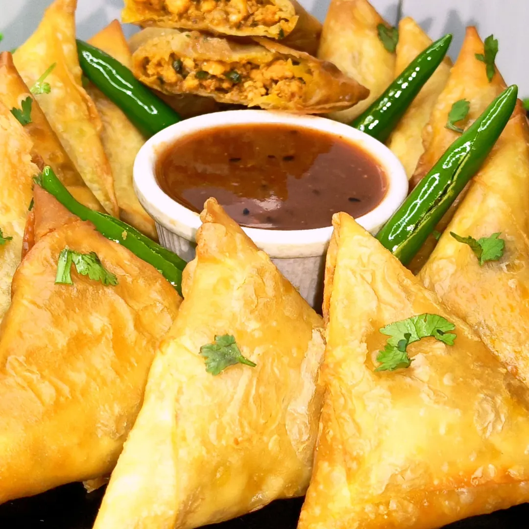 Chicken Samosas – Crispy pastry filled with spiced chicken.