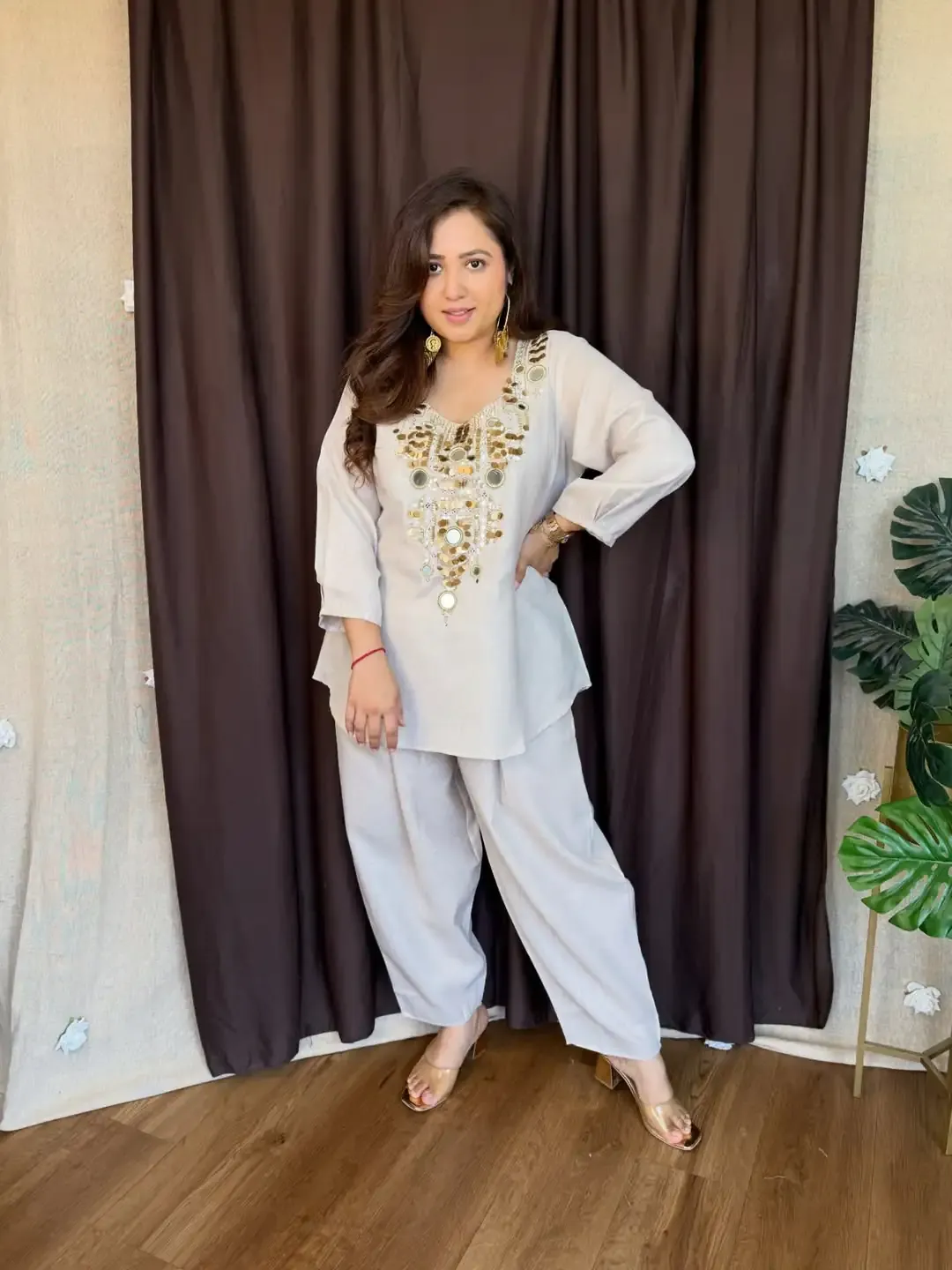 Kurta with Side Slits + Palazzo – Casual yet elegant.