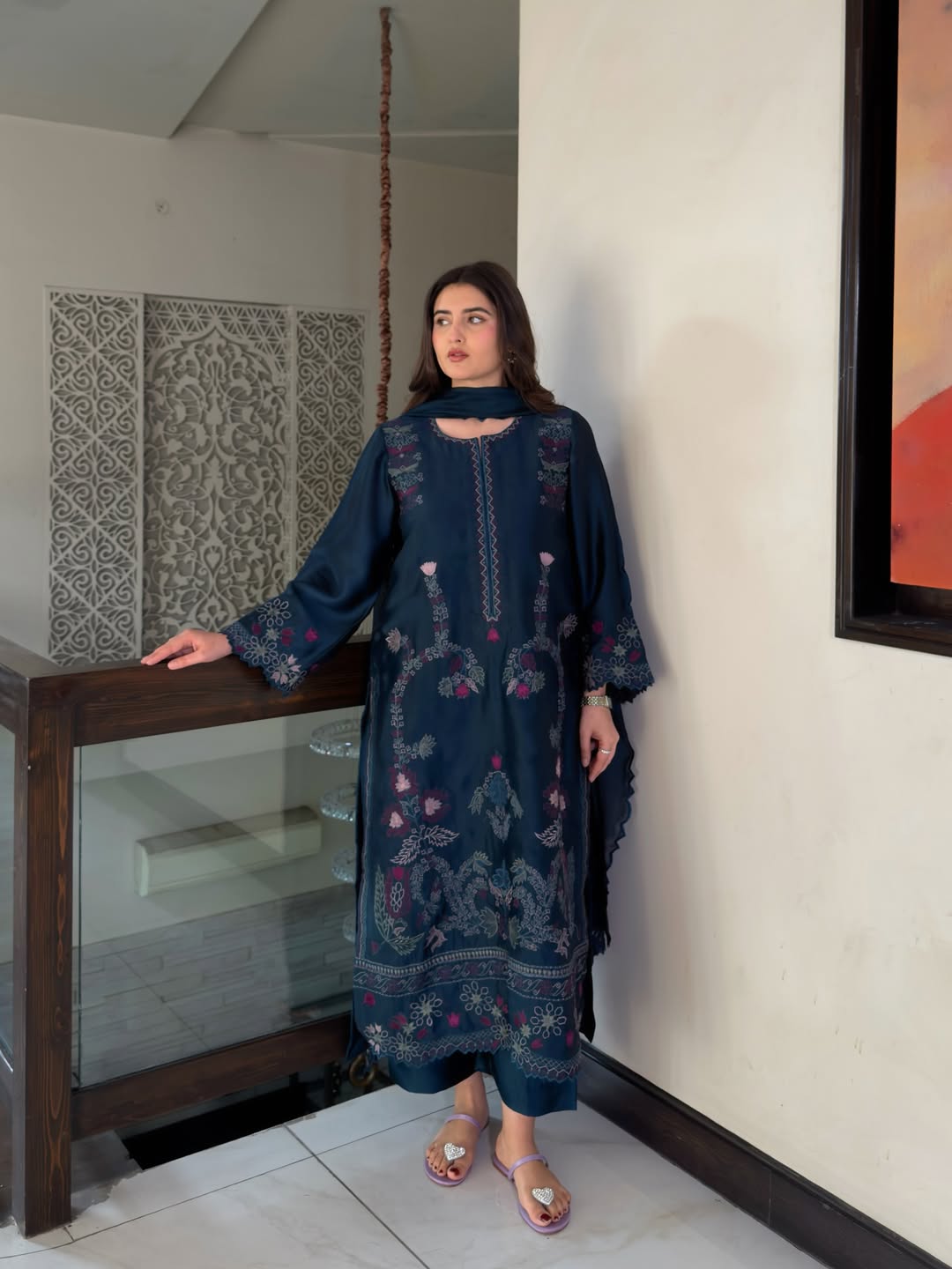 Embroidered Kurta + Churidar – Classic festive look.