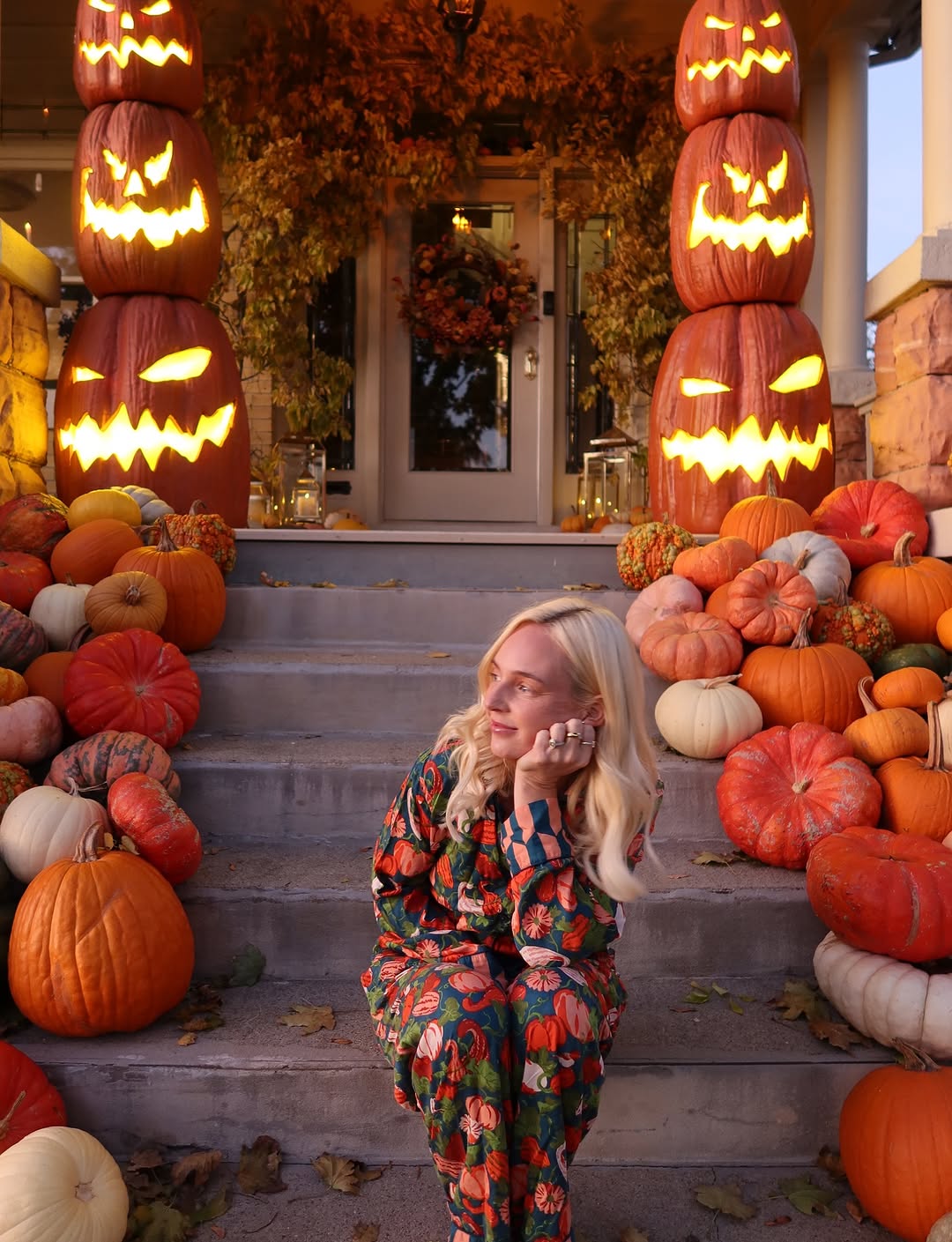 Jack-o’-Lantern Décor – Pumpkins with soft lighting.