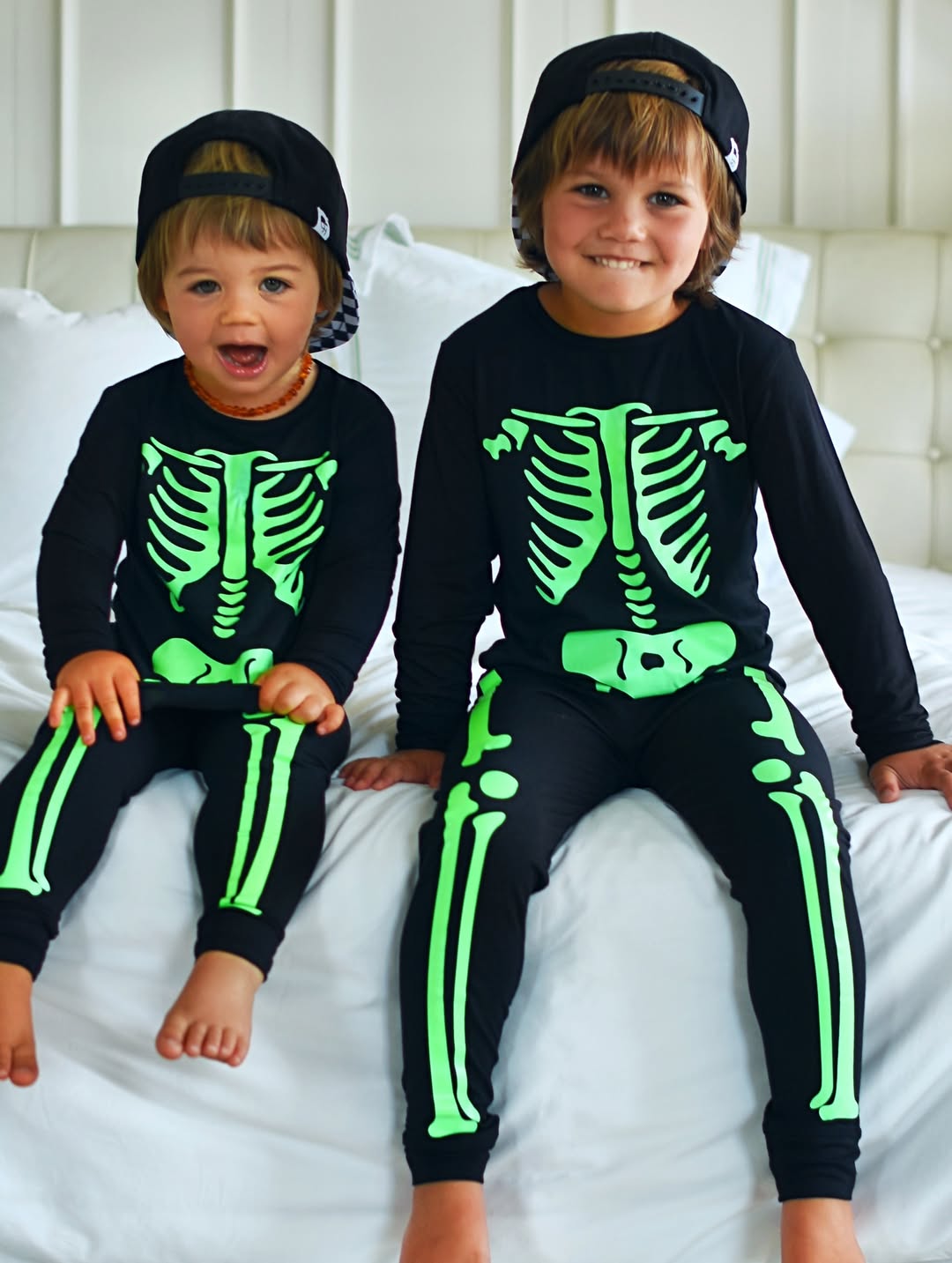 Skeleton Pajama Party – Bone-print pajamas and spooky snacks.