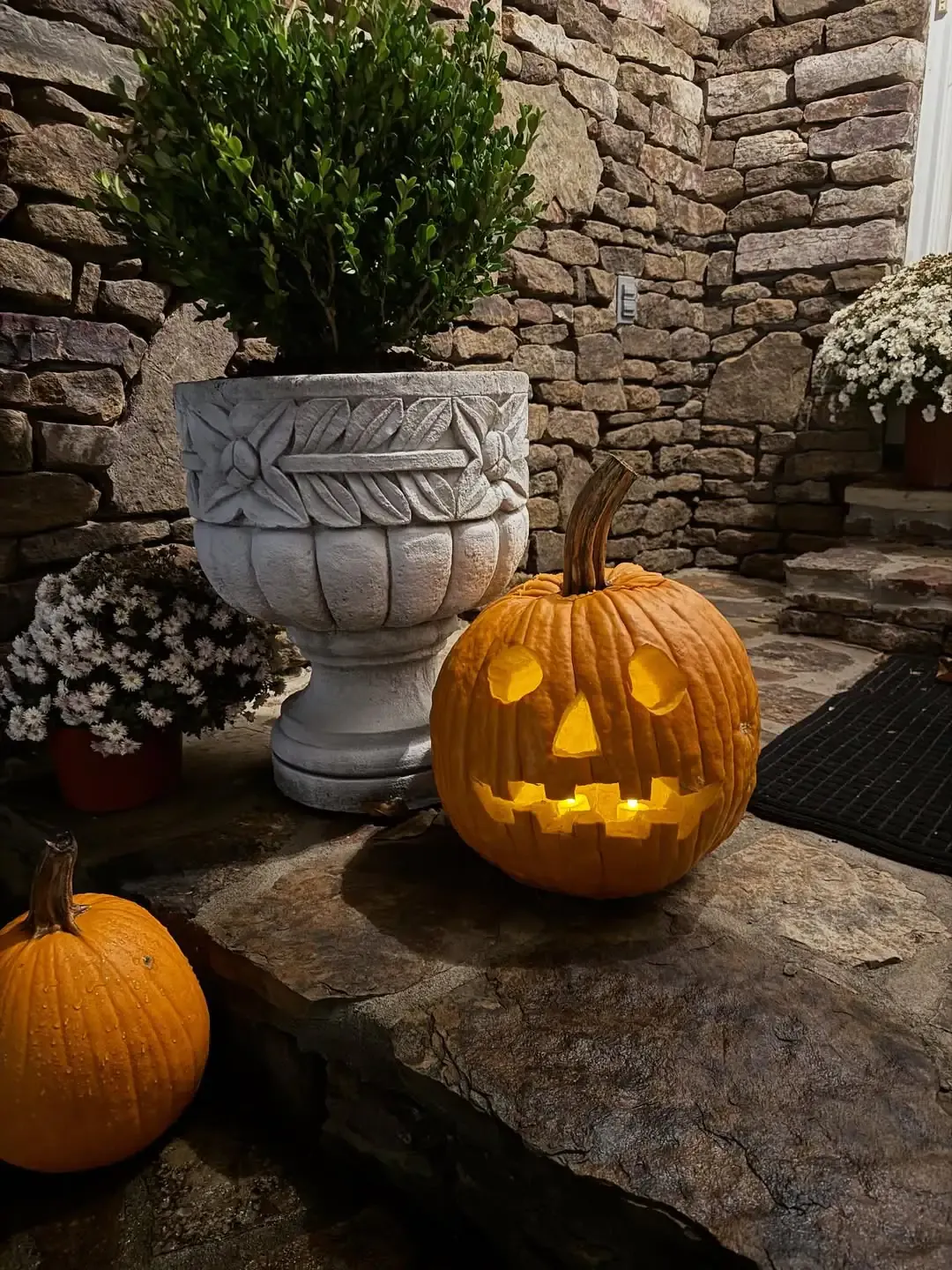 Jack-o’-Lantern Décor – Pumpkins with soft lighting.