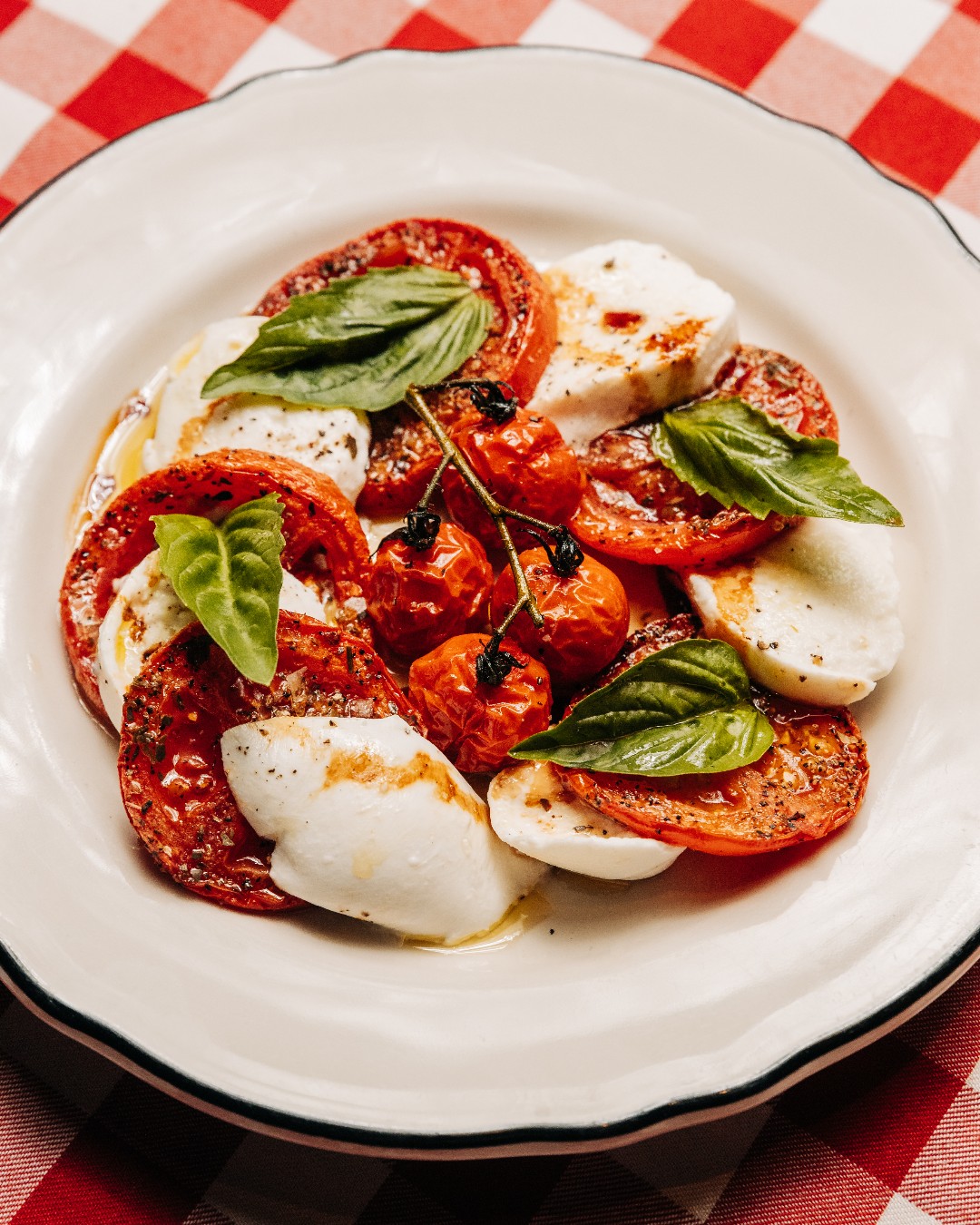 Mozzarella & Basil Salad – Fresh mozzarella, tomatoes, and basil with olive oil.