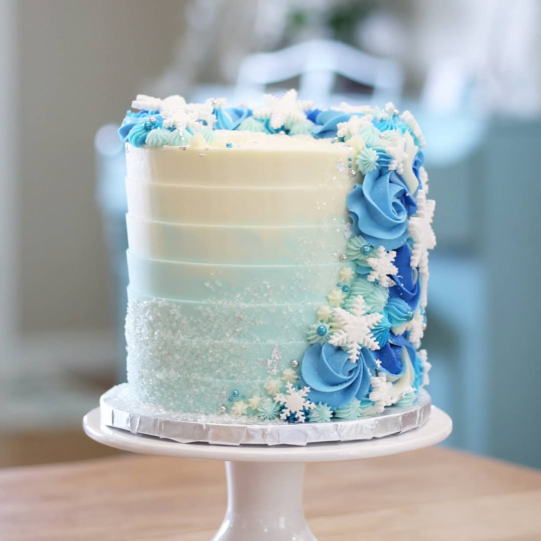 Winter-Themed Cake – Snowflakes, polar bears, or frosty colors.