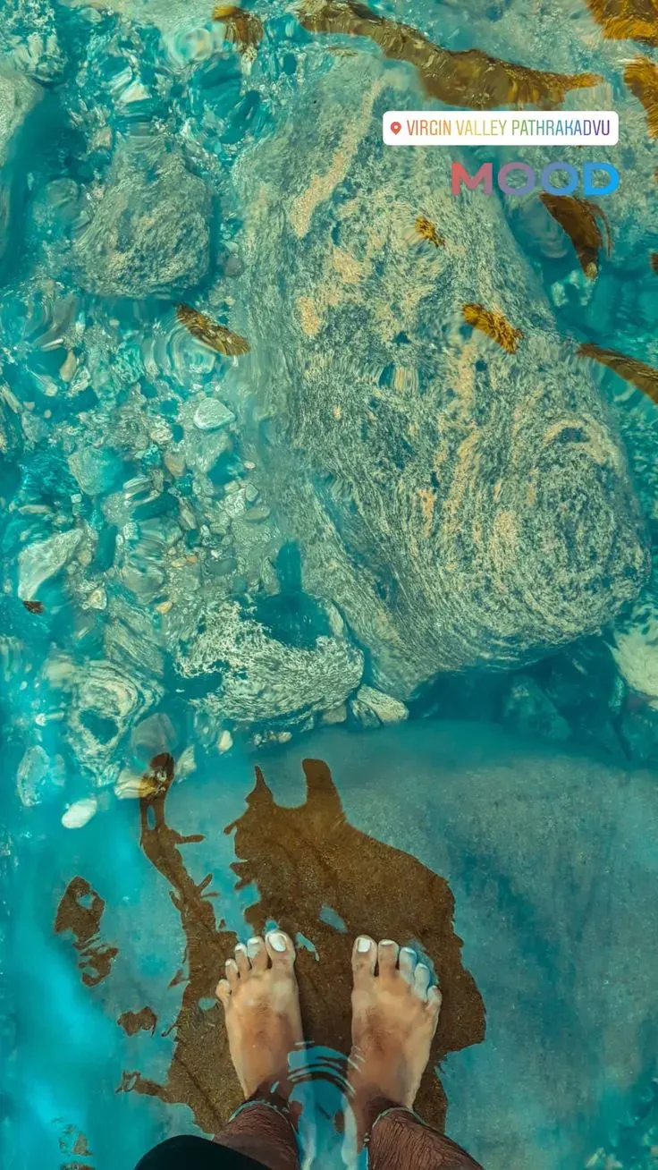 Foot Play Pose – Foot lightly splashing water, delicate motion.
