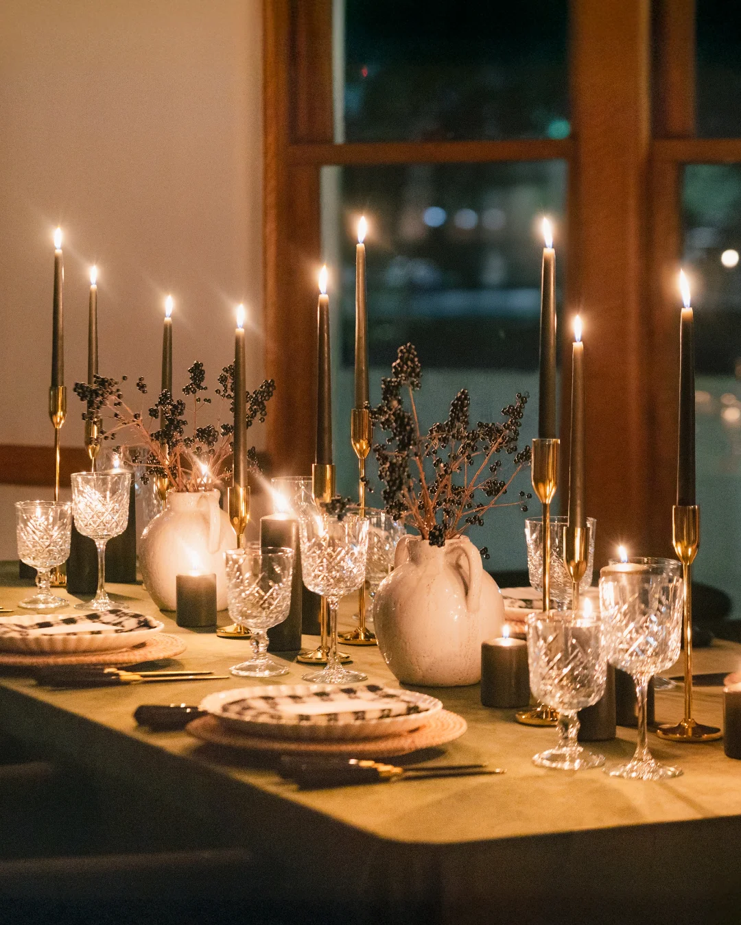 Candlelit Table Setup – Soft candles create an intimate, romantic mood.