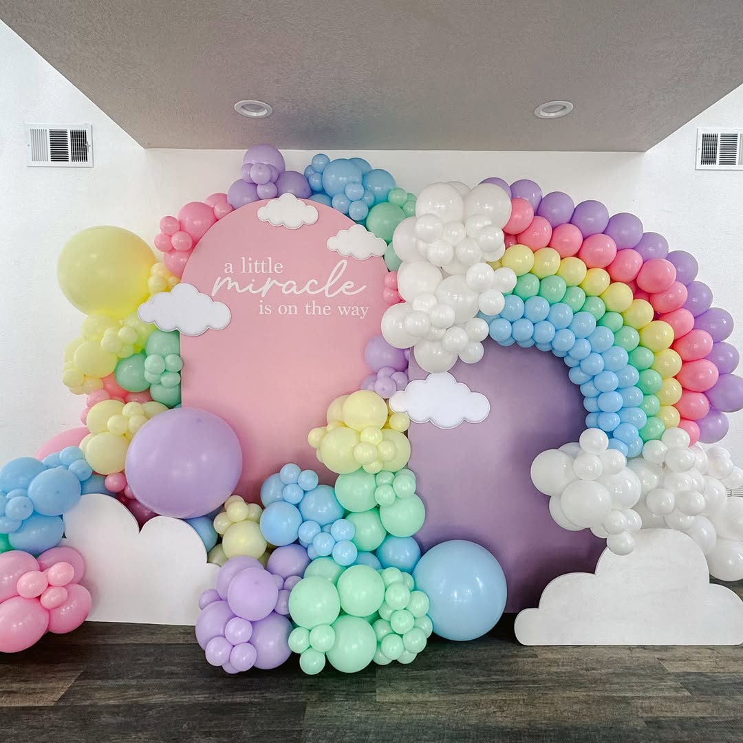 Pastel Ombre Baby Shower – Soft gradient color scheme in decor, desserts, and balloons.