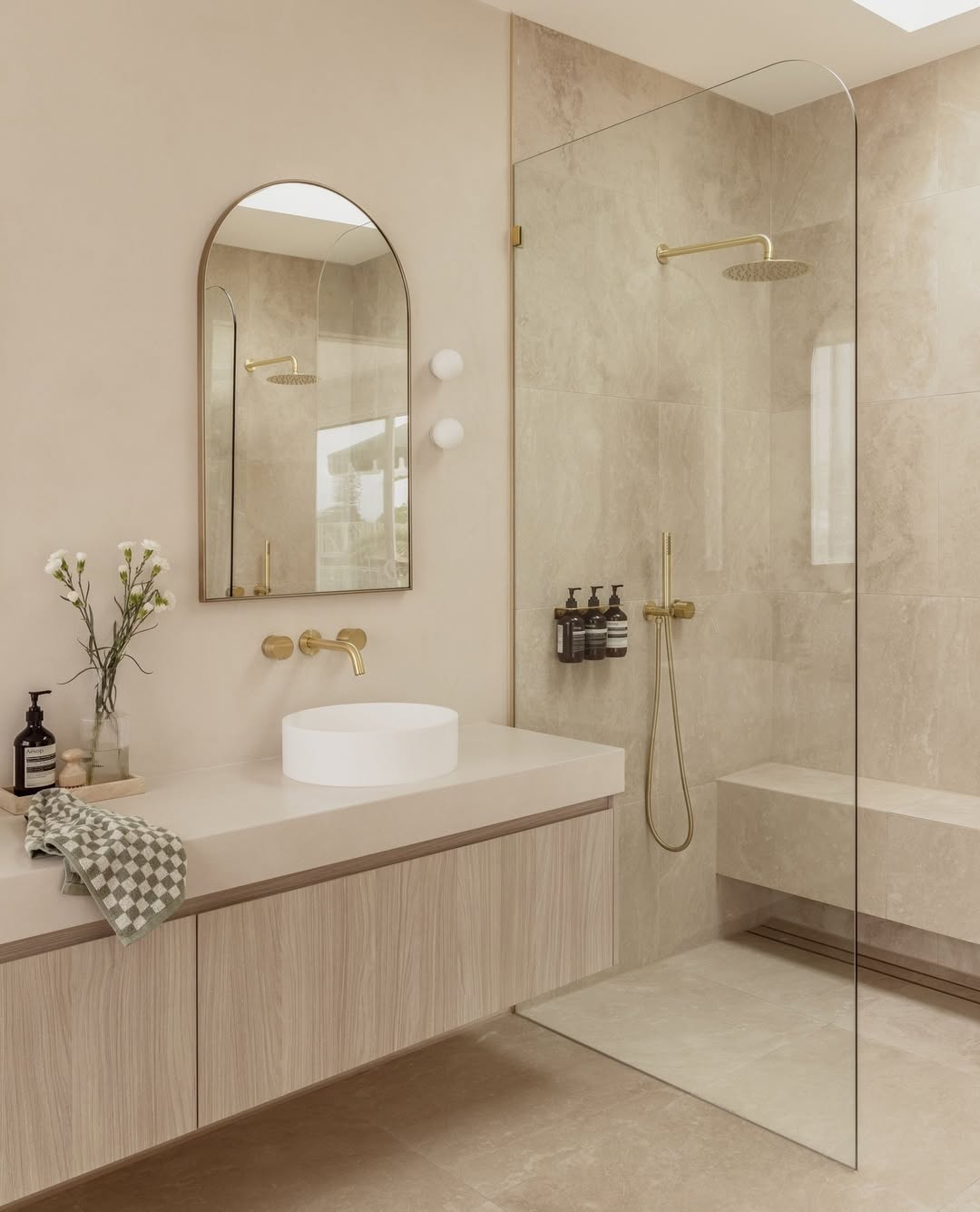 Gold & White Minimalist Shower – Modern, chic, and sophisticated look.